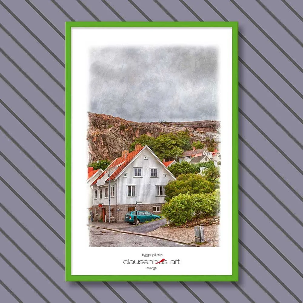 posters with swedish motifs in 9 different colors graphic line composite frames printed on 240g/m2 silk matt poster printing paper with high UV resistant colors, frame 9mm composite picture frame and genuine float glass which is a frame glass with a smoother surface and somewhat better light properties than ordinary glass. float glass also has 40-45% UV protection. available in 3 formats: 20x30 cm, 30x45 cm and 40x60 cm.