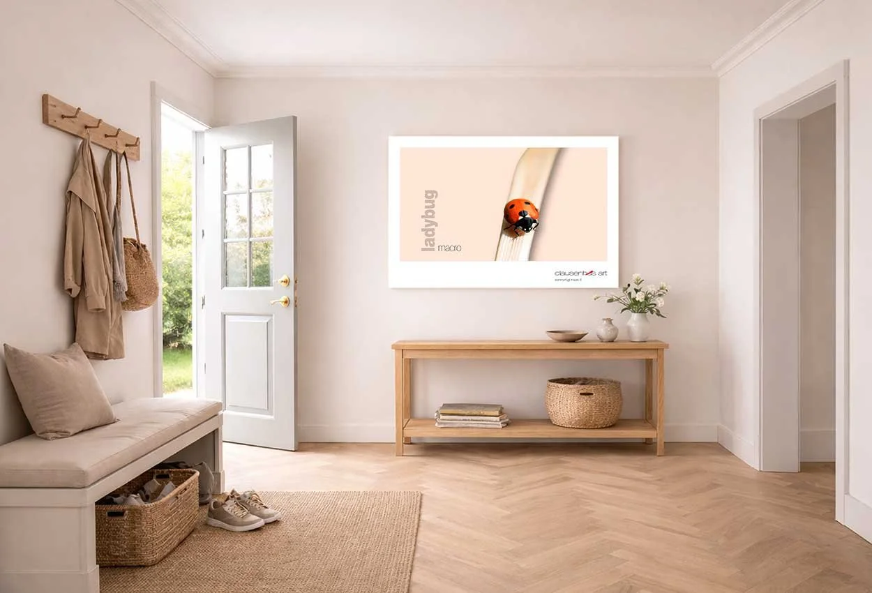 posters with reproductions of macro motifs, without the flower and the bee it just can't be done, and therefore they shouldn't be forgotten here, and what is more beautiful than the butterfly with its many variations and colors, the ladybug that calmly walks around and eats its fill of aphids, and the dragonfly that pauses in the air scouting for its prey over the lake, all of which can become good pictures in the nature photographer's camera, and which can end up as beautiful motifs and adorn the walls of any living room.